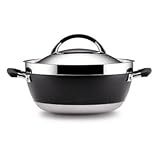 Wide and shallow with sloped sides and looped side handles. The shallow shape allows the pan to fit easily in your oven. It's wonderful for savory stews that are started on the stovetop and transferred to the oven for slow braising. The Anolon Ultra Clad professional style stainless steel interior cooking surface is non-reactive and durable for your everyday cooking needs.