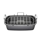 Quality steel with chrome accents.Extra-wide, riveted roaster handles and Generous capacity.Chrome plated, removable floating rack.Non-stick for easy cleaning.Upright rack handles and Oven safe to 450°F and Dishwasher safe. An exquisite piece you'll want to take out and use often, it's beautiful enough to go from the oven to your table.The chrome-plated rack rests over the sides of the roaster and helps keep cooking foods out of the oil and fat while allowing even roasting around the food. Roaster handles are riveted to the pan for strength and are extra wide to allow a more secure, confident grip. Upright rack handles make lifting and transferring cooked food from pan to cutting board easier.This roaster is made of high quality steel and distributes heat evenly. The generous capacity is large enough for roasting turkeys up to 24 lbs. Oven safe to 450°F.