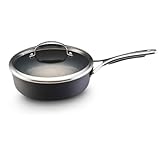 A glass lid allows you to monitor the cooking progress without having to lift the lid which allows moisture and nutrients to escape.A long-lasting, 3-layer nonstick interior is exceptionally durable. Food slides off effortlessly and cleanup is quick and easy. For added convenience, this saute is oven safe to 400°F..This saute feature a handle crafted of a combination of soft silicone and quality stainless steel; It looks great, feels comfortable, and is double riveted for added strength.Heavy gauge hard-anodized construction is twice as hard as stainless steel and distributes heat evenly; Elegant windsor shapes look great and speed evaporation and sauce reductions.Hassle-Free Replacement Warranty. Extremely versatile pans - no kitchen should be without one! Used for sauteing meats and vegetables, frying chicken, pancakes, eggs, or grilling sandwiches. Deep sides give extra capacity so that you can braise, stew, deglaze, or add additional ingredients after browning for recipes such as chicken and rice or paella.