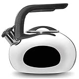 This 2qt. teakettle features a comfortable, easy-to-grip handle. The kettle features a convenient squeeze and pour handle. The whistle is loud and clear to alert you when water comes to a boil and has a removable lid for easy cleaning and filling.