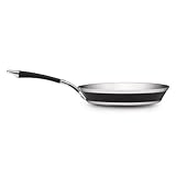Comfortable silicone rubber handle for a cool touch.Dishwasher safe; oven safe to 400 degrees F; limited lifetime warranty.Stylish exterior combines polished stainless steel with a classic black nonstick band.Crafted from three layers of metals--two layers of stainless steel sandwiching layer of heat-conducting aluminum.Expertly crafted, stylish 10-inch open skillet with nonstick surface. The 8 inch Anolon Ultra Clad skillet is ideal for sauteing vegetable, searing small steaks or preparing individual sized portions. Its' small size and light weight makes flipping and tossing a breeze.