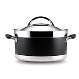Expertly crafted, stylish 3-quart saucier with lid designed specifically for preparing sauces.Professional-quality, domed stainless steel lid locks in moisture and flavor; comfortable silicone rubber handles for a cool touch.Dishwasher safe; oven safe to 400 degrees F; limited lifetime warranty.Stylish exterior combines polished stainless steel with a classic black nonstick band.Crafted from three layers of metals--two layers of stainless steel sandwiching layer of heat-conducting aluminum. Combining a modern style with classic, gourmet-quality stainless steel cookware, Anolon's Ultra Clad line of cookware delivers high performance at an exceptional value. This 3-quart covered saucier--which translates to sauce chef--designed specifically for preparing sauces as the bottom edges of the pan are widely rounded for easy whisking and pooling liquid. Crafted from three layers of metals, the cookware's thick core of heat-conducting aluminum is permanently bonded to gleaming stainless steel on the interior and exterior surfaces. Aluminum extends up the sides as well, ensuring heat distribution. It features a polished stainless steel exterior that's stylishly accented with a black, matte-finished nonstick band. The strongly durable polished stainless steel handles are complemented by comfortable silicone rubber for a cool touch. The domed stainless steel lid locks in moisture and flavor. The pan is oven safe to 400 degrees F and is suitable for use on all cooktops, including glass and induction. Dishwasher safe, though hand washing is recommended. Backed by a limited lifetime warranty.
