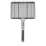 Place a fish fillet between the grilling plates and close. Now you can turn the fish without it flaking and falling apart. Also great for keeping mushrooms, onion slices and other foods from falling through your grill's grates. Do not expose to direct flame, such as a campfire. Not recommended for use with metal utensils. Hand wash only. 13" long x 8 3/4" wide x 2" basket. 22" long with handle.